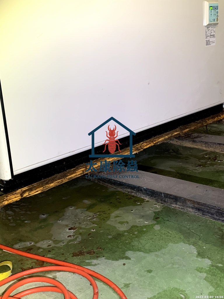工廠空間大、物資多,白蟻防治不能只做一次!這家工廠每年都固定找我們檢查,今年一樣在邊角貨架下方發現少量白蟻活動。